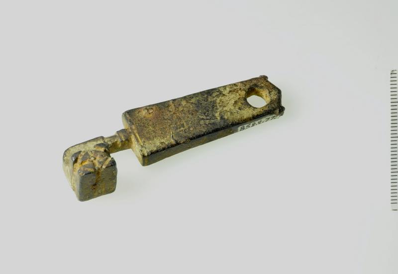 Les clés de type A, caractérisées par leurs dents perpendiculaires à la tige, dominèrent la production du Haut-Empire. Leur conception simple facilitait la fabrication en série dans les ateliers urbains. La tige, généralement de section carrée (3-5 mm), se terminait par un anneau de préhension circulaire ou ovale.